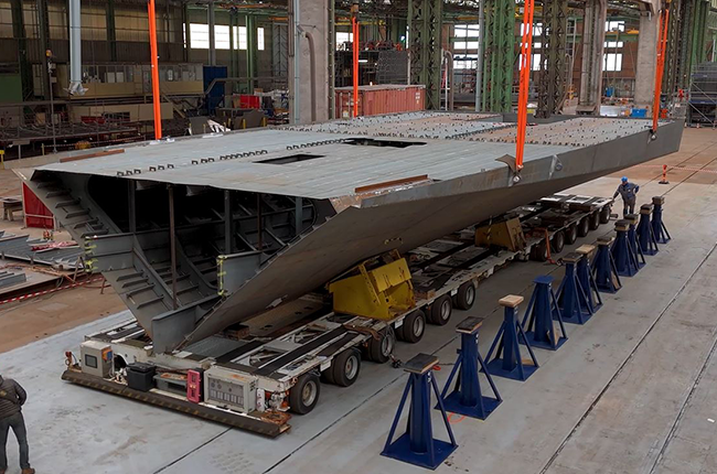 La coque du navire représente la partie située en dessous du pont principal et la superstructure désigne celle située au-dessus. Pour la BR71, la coque est en acier tandis que la superstructure est en aluminium.