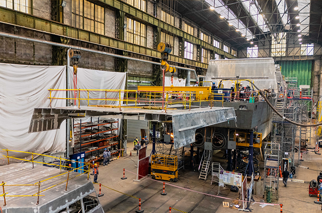 La construction du PH #1 (tête de série) est en cours chez Piriou. Actuellement, huit blocs ont été réalisés.
